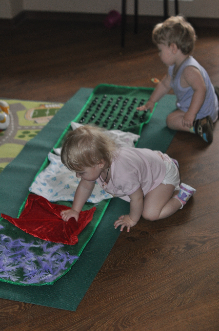 развивашкиКупила массажный коврик. Типа с имитацией галькию Это пипец! Прошлись мы с мужем по 3 см булыжникам и расстроились, 600 рублей выкинули на ветер. Но хоть переделать можно. Вытащила большую часть кирпичей, наклеила перьев, пришила мешочки с фасолью, горохом и сухой травой и листвой. Красота!! Детки ходят по ней с удовольствием, и даже на эти камушки по чуть-чуть наступают.