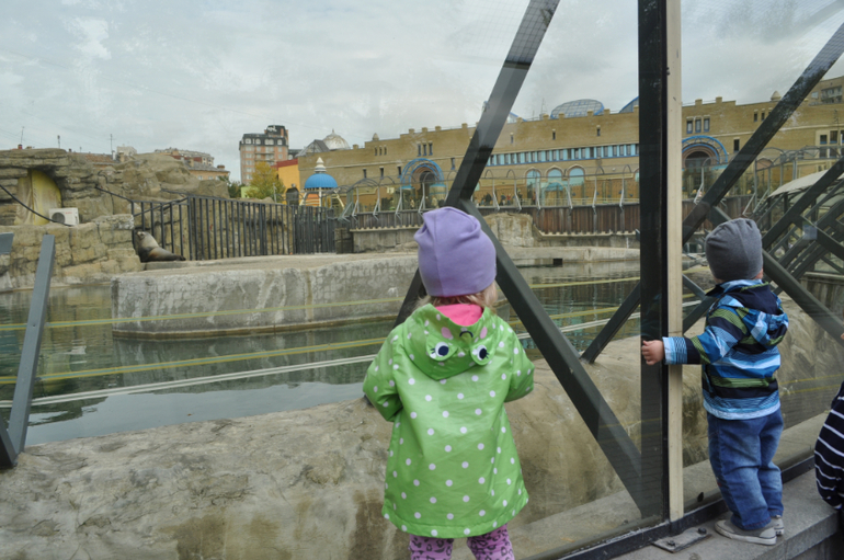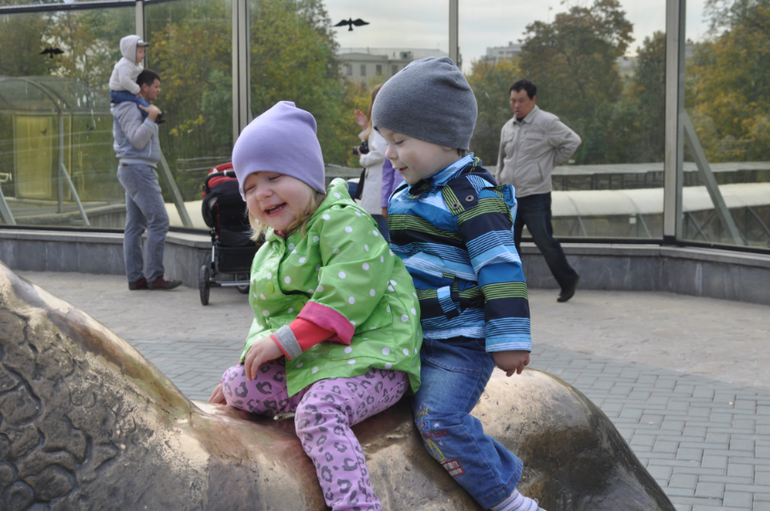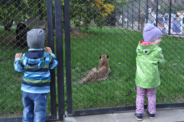 На ДР ходили всей семьей в зоопарк. Надо детей приучать к общественным местам (не только к обычным паркам). ОЧень они капризные, внимание их рассеяное какое-то. В зоопарке больше не на зверей смотрели, а лазили по перилам. Понравились волки и птицы большие.
