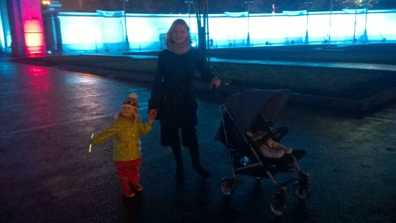 До ВДНХ нам совсем близко и мы вечером всей семьей и с нашей крестной рванули туда. Шоу бесплатное, народу было ооооочень много. Еле еле припарковались, не удивлюсь если нам штраф придет за неправильную парковку))) Детям понравилось, Полинка так визжала от восторга. Световое шоу+музыка громкая -и Полинка в экстазе. Научилась громко кричать : "Круууто!!!". Остался один день - сегодня! Кто не знает как провести вечер, советую!