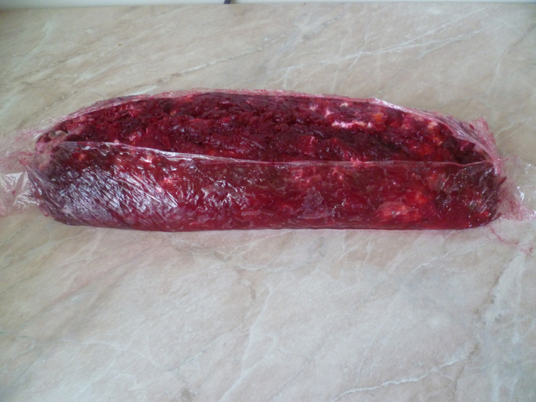 Заворачиваем в пленку, придаем форму и убираем в холодильник на два часа.