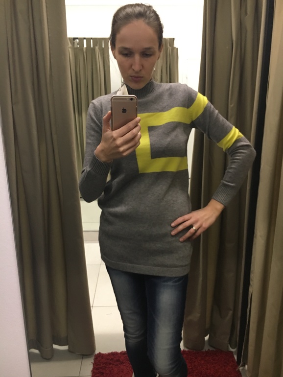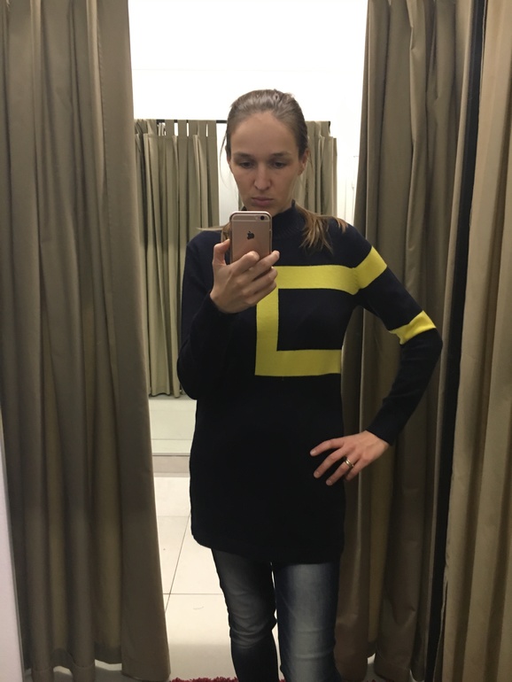 А свитер это так Вчера побежала малому коврик резиновый на пол покупать в "дом игрушек", на обратном пути забежала хоть что то померять, а то крыша уже давно перекосилась и начинает ехать потихоньку. А так сама сижу в полной апатии. Так устала. Ещё и малой болеет.