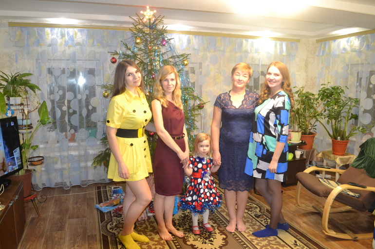 девочки)))) Алина, я, моя мама, наша беременная крестная и жена брата ( в желтом)