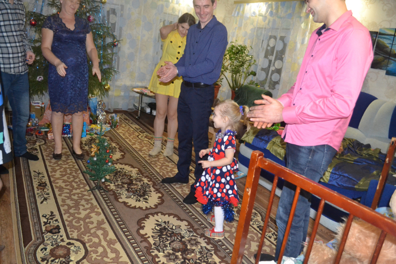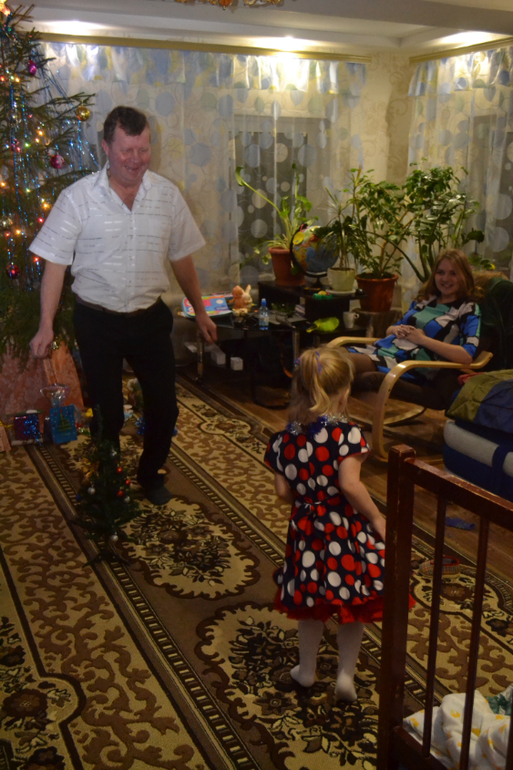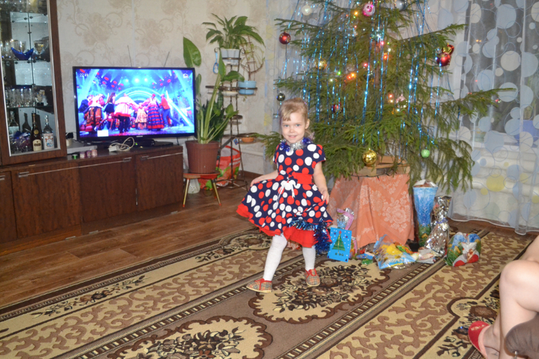 влили кое-как, темп спала, но в итоге до часу ночи так и не смогла больше заснуть, сидела с нами за столом, водила хороводы, пела песни, дождалась курантов, подарков! была временами вялая, но без темп. после курантов заметно стало, что устала и спать легла наконец-то! к часу заснула! бабушка осталась с Алиной, а мы всей толпой пошли в центр на елку, на праздник,