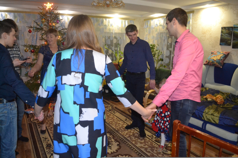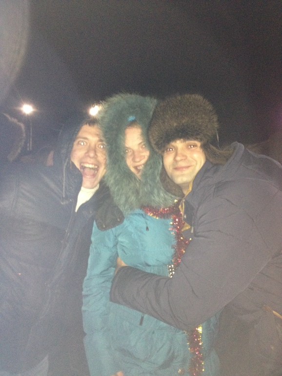 , но холодно, у кого-то конечно был подогрев 40градусный))) но это не про нас с Машей) мы хоть и танцевали, но все равно быстро замерзли) и пошли домой) по дороге пацаны валялись в сугробах, да, там снег, белый, чистый и много!!!))) хотелось тоже поваляться, но вместо нас валяли деда)))))