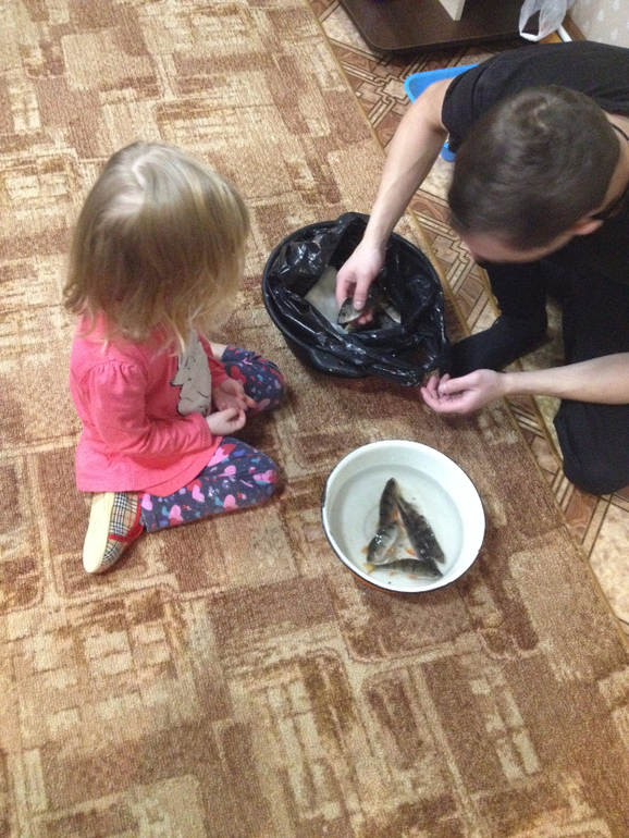 несколько рыбешек потом запустили в большую банку и полдня Алина ходила любовалась))))