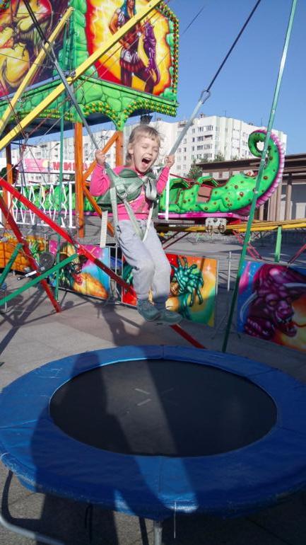 пофоткались, поиграли на площадке, договорились, что раз нет веревочных батутов, попрыгаем на выходе на надувном батуте и пойдем домой)