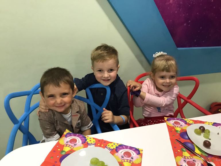 а к 5 часам мы пошли на день рождения к Теме) в Хлоп-топ, .все соседи))) пришли, маха по дороге стала засыпать, не заснула, в итоге привели Алину, поздравили именинника, и пошли с Машей на улицу погулять, поспать вечерний сон)