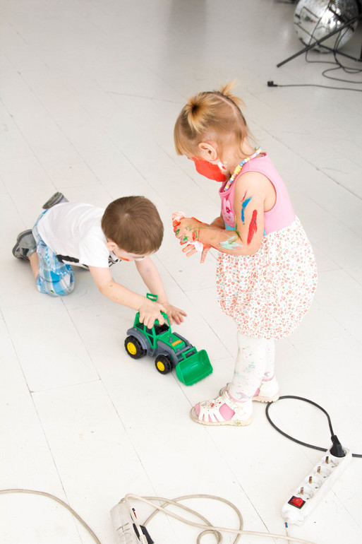 Игорь честно отработал 1 час, а потом ему стало скучно, он продолжил развлекаться в студии - дергал за провода, тыкал фломастером в розетку, рисовал на белом полу, растаскавал и раскидывал студийный реквизит, и катал свой любимый зеленый трактор, который мы специально на такой случай взяли. Арина отработала фотосессию 2 часа на 200%, сыграло то, что она любит внимание окружающих и позировала с неподдельным удовольствием, тем более ее мама не разрешает дома столько рисовать везде, а это сейчас была ее задача. Короче эмоции после фотосессии были наипозитивнейшие! Дети получили удовольствие, мы получили удовольствие, все рады.