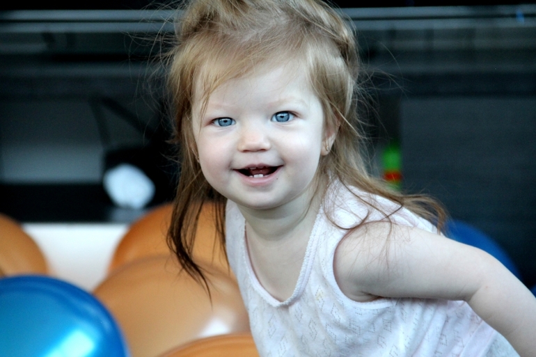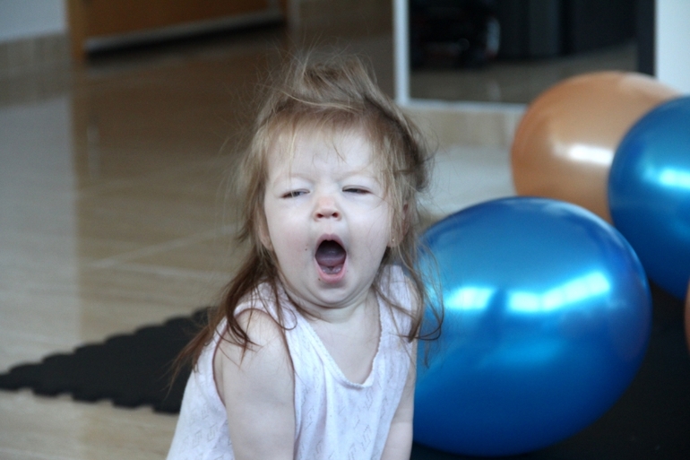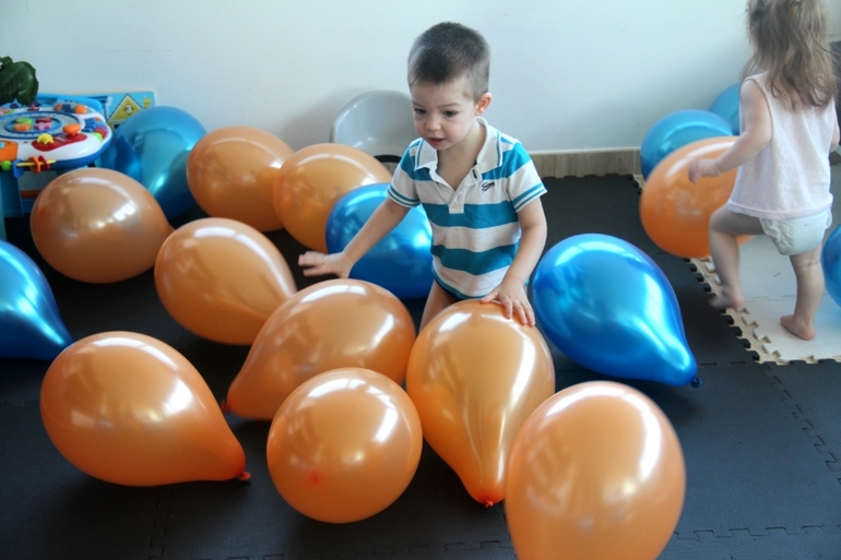 Утром проснулись рано, около 7, в зале было надуто много шаров(бедный муж). Сонные оба ребенка просто ползали среди них