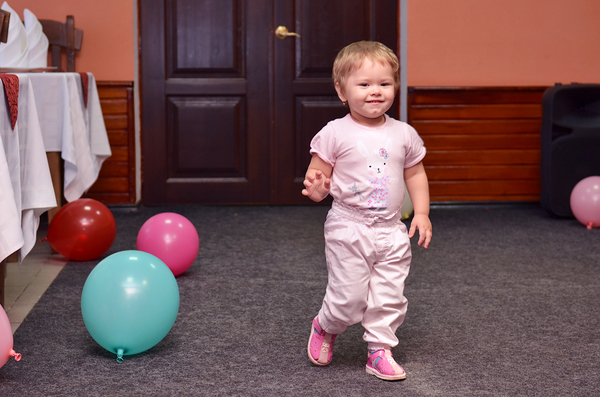 1. Мы пришли в ресторан, когда именниницы ещё не было. Моя Диана не стала дожидаться пока я разденусь и рванула сразу в зал играть с воздушными шарами)))