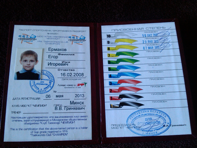 Егор посередине :)...а далее наш паспорт спортсмена
