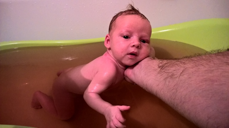 Купаться вначале категорически не нравилось, а потом мы нашли причину! Косте не нравится в воде лежать на спине, а на животике получает удовольствие ).