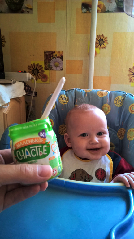Днем наш режим поменялся. Теперь три дневных сна. Утром и вечером по полчаса. А днем как повезет 1-2часа. Переход на новый режим мне дался нелегко, ребенок психует...я не понимаю....слезы ребенка....мои нервы... Кушаем пюре пока из баночек: Кабачок, брокколи, цв.капуста, морковь, тыква и их миксы. Из фруктов яблоко, груша, банан. Каши попробовали две гречневую и кукурузную безмолочные. Не очень пошли, а вот если добавить бананчик- за милую душу). Из моей тарелки начинает кусочки пробовать и гречку, и перловку, и макаронки. Все ему хочется и интересно. И вообще, по сравнению со старшим сыном - кормить его одно удовольствие))).
