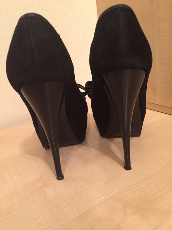 Есть небольшая царапинка на каблуке левом снизу и набойки стоят еще родные которые нужно поменять уже ...