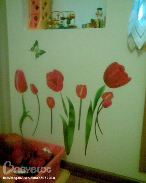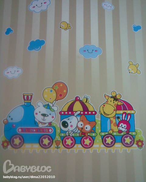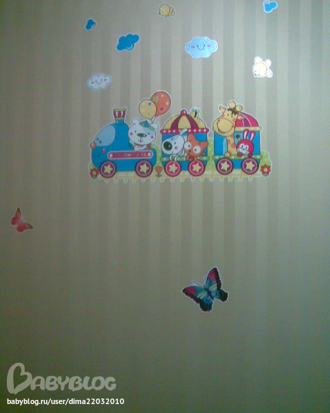 Переселили мы чадушек в отдельную комнату, то бишь детскую))). Но до того там обойчики тоскливые, но вроде хорошие, менять жалко. Вот и накупила я интерьерных наклее и стала у нас красота и лепота)))