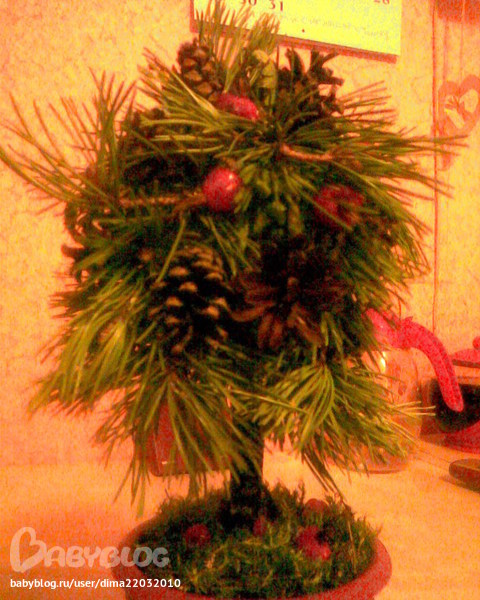 Вот такое дерево за выходные соорудила я Марусе в садик. У них там конкурс идет, нужно сделать поделку из природных материалов. У нас здесь мох, папоротник, сосновые ветки и шишки, палка и шиповник.