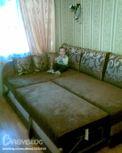 Маруся потеряла уже четыре молочных зуба, ходит смешная, как старушоночка, язык вываливается в дырку, сосиску ест пол часа, и так ее откусит и так, а она все не поддается. А еще хочу похвастаться, купили мы такой диван)))))
