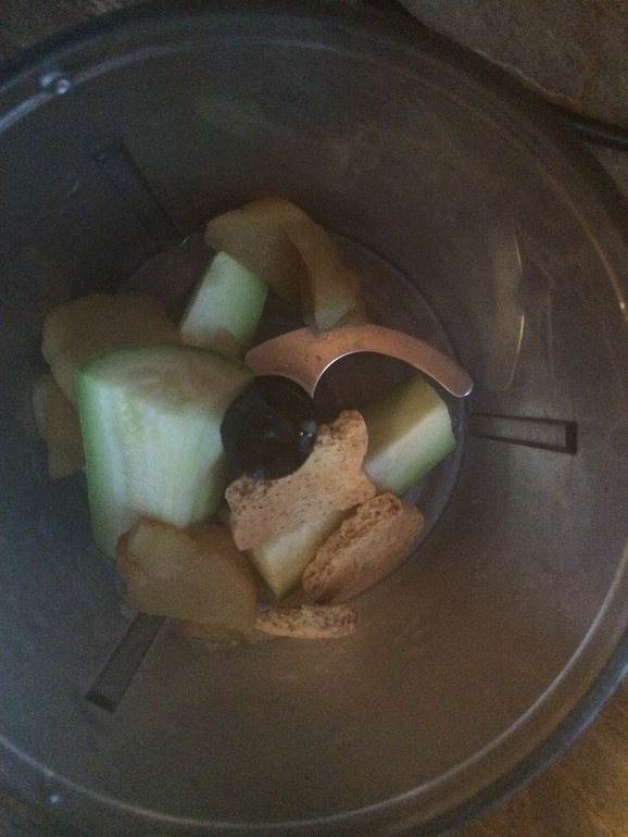 Яблоко и кабачок кладутся в пароварку на 15 минут, а потом все в блендер