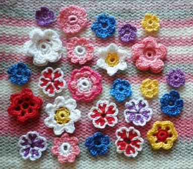 Для украшения кукольной одежды) Совсем крошки,диаметр 1-2см. Вязала из ниточек-мулине ПНК им.Кирова крючком №1.