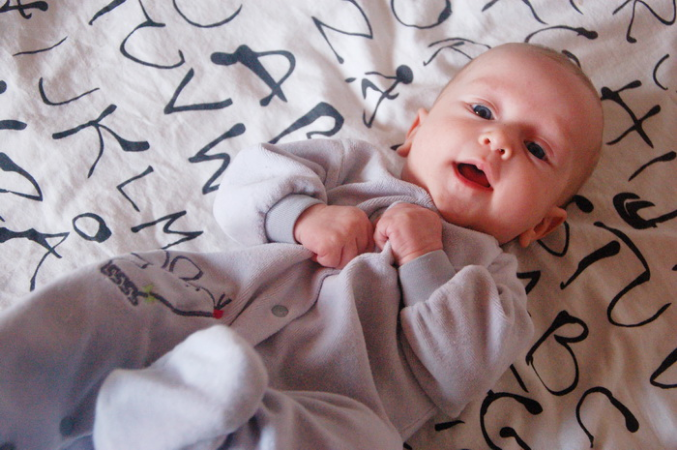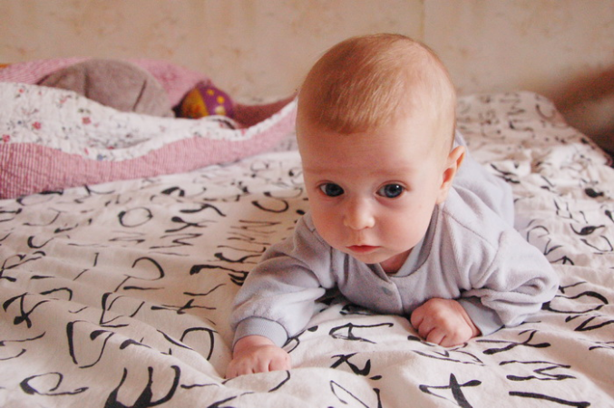 Я даже охнуть не успела, сфотографировать в смысле :) Правда перевернулась не ровно колбаской, а чуть вбок, что на фотографии в принципе понятно по расположению строчек с буками на белье. За неделю сей навык был натренирован в обе стороны (через правое и левое плечо) и продемонстрирован всем (Гриша кричал мне из комнаты: "Мама, Тамара закатилась!")
