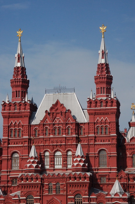 Мы смотрели в бойницу Кремлевской стены, считали ступени Лобного места (на котором, как выяснилось, никого не казнили никогда), сравнивали ГУМ и Исторический музей, трескали второй завтрак на задворках Храма Василия Блаженного - в общем, почти сделали маршрут :)
