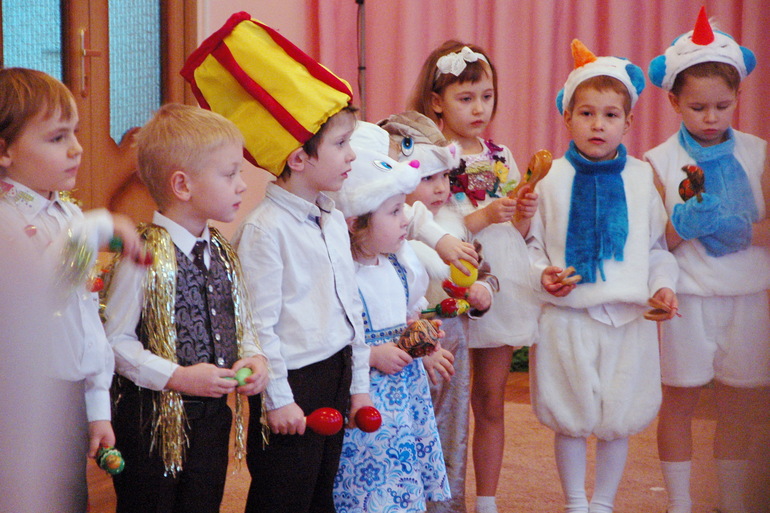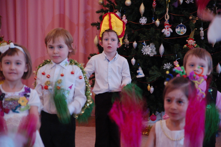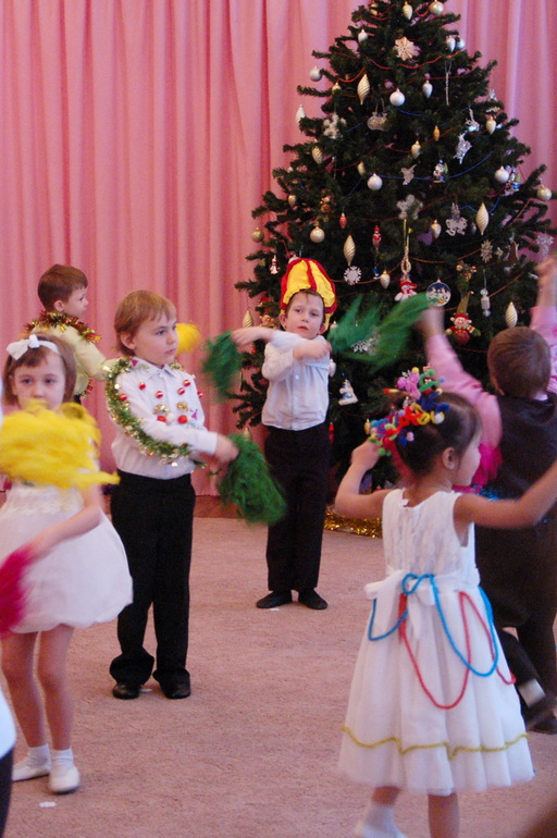 Лёня пел все песни, танцевал танец ёлочных игрушек, играл в "оркестре". После праздника спрашивает: "Тебе понравилось, как я танцевал?" "Конечно, - говорю, - молодец!", - но потом пришлось добавить, что на празднике лучше все-таки делать радостное лицо и самозабвенно танцевать, а не с каменным, не сводя глаз с показывающей движения фузкультурницы, бояться пропустить нужные движения. Но Лёня такой - всё должно быть правильно, и везде ему видится работа.