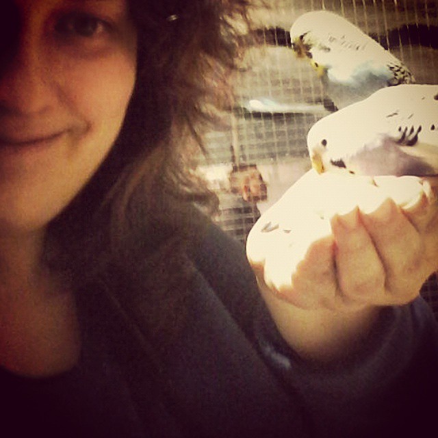 Я в контактном зоопарке "Чудесный рай" на ул. Островитянова, на разведке, без детей, пока жду Гри из школы. До меня снизошла синяя птица! Даже две :)