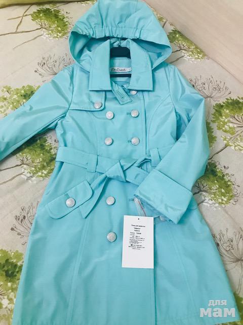 Плащ Дували размер 134 новый, цвет бирюза. (длинна по спинке 69, рукав с манжетом 34 (с развёрнутым - 38).