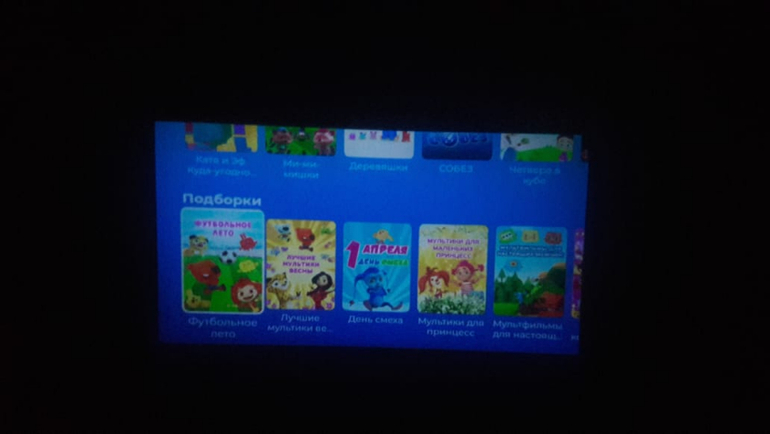 Днем, когда дочка в школе, проектор не стоит без дела, муж смотрит футбол через мегафон тв. А я загружаю на мультикубик свой любимый сериал через встроенный Wi-fi и просматриваю его, устроившись поудобнее на диване вместе с кофе. Кстати, кроме мегафона тв на проекторе еще есть ivi, YouTube и яндекс музыка, но пока мы ими не пользуемся, хотя приложения интересные, но думаю и до них руки скоро дойдут.