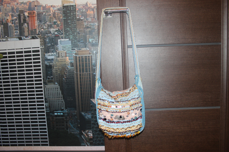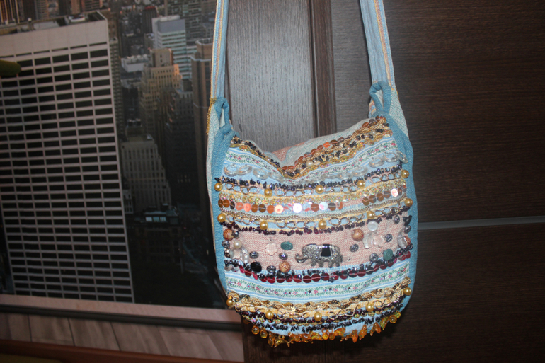 Сумка куплена в Индии, очень вместительная. Состояние отличное, но нет одной блестяшки на ремне - не заметно.