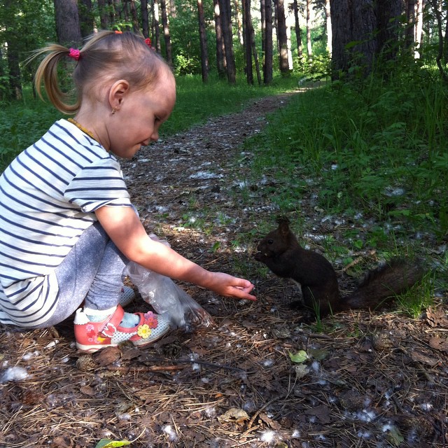 Как же здорово жить рядом с лесом, спрятать в прохладе от жары а еще каждый день кормить белок, голубей, ловить бабочек и смотреть как растет земляничка #алинкины_будни #сладкаяягодка #кормимбелочек #красноярск #лето2015