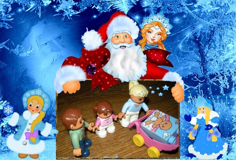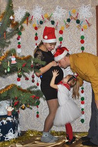 Сейчас наша семья выглядит вот так. Это Вика показывала мне,как мы будем гулять с малышкой.![]()