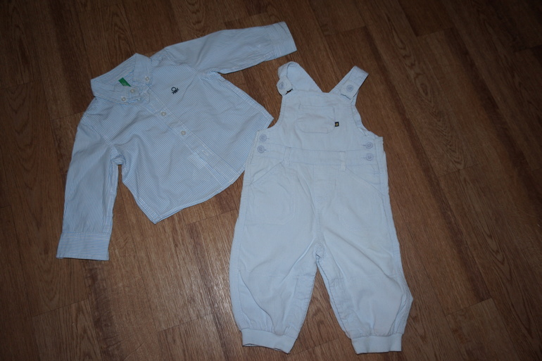 6.Комбинезон Мазекея 6-9 месяцев велюровый -200 рублей.Рубашка Бенетон 74 см-200 рублей.