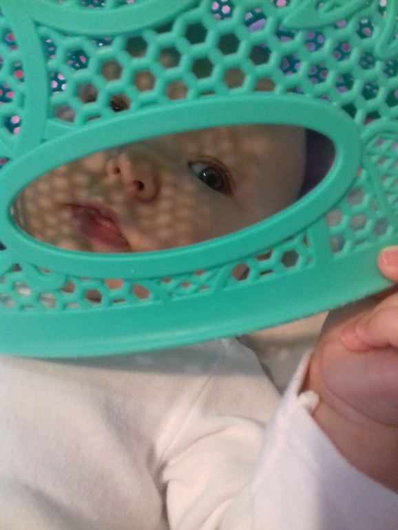 играет в куку сама с собой! то вот корзинкой,то пелёнкой