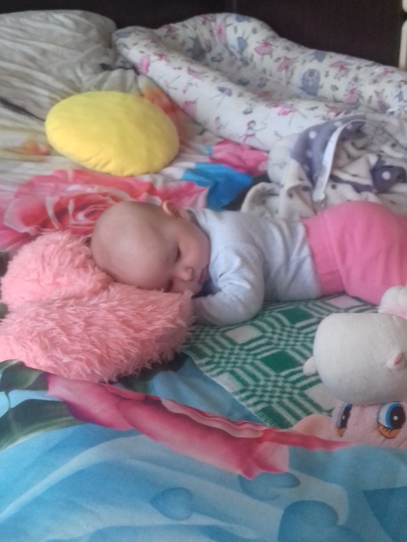 Спит пока со мной...я не готова переложить.Спим в коконе,научились на бочок поворачиваться то на один,то на другой.