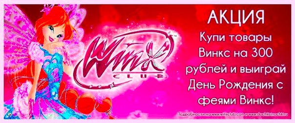 3. Каждый месяц будет определен победитель, который получит уникальный подарок: Феи Винкс прилетят к нему домой, поздравят его с Днем Рождения и подарят волшебный подарок!