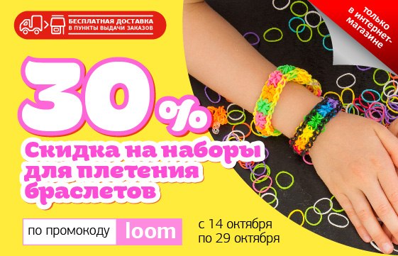 Только до 29 октября 2015 г. мы дарим скидку 30% на весь бренд Rainbow Loom (Наборы для плетения браслетов),