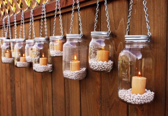 Из банок можно сделать красивые фонарики для украшения дома или ночники в детскую комнату. Ночное небо в банке. • В плотной бумаге темного цвета сделайте дырочки при помощи гвоздя, кончика карандаша или ручки. • Оберните банку бумагой или, свернув бумагу, поместите ее внутрь банки. Если банка обернута бумагой снаружи, то внутрь можно поставить обычную свечку‑таблетку. Если бумага внутри банки, то используйте только светодиодные свечи. • Вместо бумаги можно взять фольгу. • Такой светильник можно сделать из большой трехлитровой банки или из маленькой баночки из‑под детского питания. Как еще сделать банки‑подсвечники • Обклеить банку кусочками разноцветной папиросной бумаги. Тогда ваш светильник будет с витражным эффектом. • Обмазать банку клеем ПВА и обвалять ее в соли, хлопьях искусственного снега или в порошке магнезии • Положить внутрь банки елочную гирлянду. • Насыпать в банку соль на 1/3 и поставить в нее свечку.
