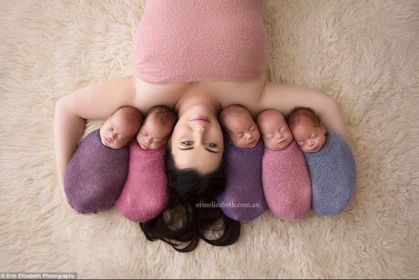 Ким и Вон Тукки из Перта (из Австралии) родили здоровых пятерняшек в январе 2016 года. У них появился сын Кит и четыре дочери - Эли, Пенелопа, Тиффани и Беатрикс. Перт поучаствовала вместе с младенцами в фотосессии, которую организовала фотограф Эрин Элизабет.