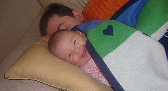Папа укладывает дочку спать, через полчаса мама заглядывает в комнату: – Ну как? Спит? – Да, мам, спит…