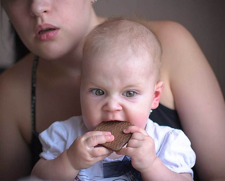 Нам 8 мес. Мы лысые и зубастые 6 ой зуб лезет, наверно весь кальций в зубы ушёл)))