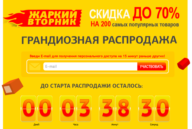(!) Распродажа "Жаркий Вторник" начнётся 21 июля в 16:00 и продлится до 22 июля 16:00.