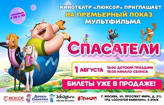 Кинотеатр "Люксор Центр" приглашает на премьерный показ мультфильма "Спасатели"!