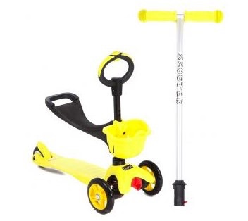Треёколесный самокат со съёмным сиденьем идеально заменит каталку. По мере роста малыша, вы можете установить Т-образную ручку и превратить модель в обычный самокат.