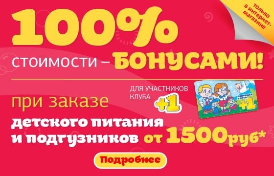 Дочки-Сыночки 10 лет Вниманию участников Бонусной программы +1! Только до 31 августа 2015 г. совершите единовременную покупку товаров категорий «Детское Питание» и/или «Подгузники» на сумму более 1 500 рублей, и мы вернём 100% от стоимости данных товаров акционными бонусами на бонусную карту! Акция действует только в интернет-магазине. Узнать подробнее. Посмотрите еще 20 записей на эту тему Отменить Ответить Не забывайте про вашу скидку 5% на всё! 25 способов узнать у ребенка, как дела в школе, не спрашивая: "Ну, как дела в школе?" Чаты Беременных Выберите чат: Январята-2026 Февралята-2026 Мартята-2026 Апрелята-2026 Майчата-2026 Июнята-2026 Июлята-2026 Августята-2026