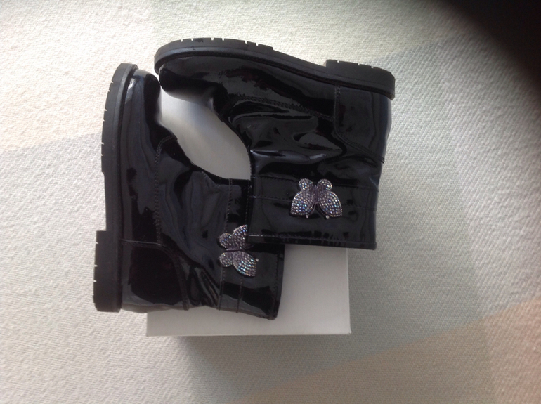 практически без следов носки, немного подмаломеривают, байка внутри, бабочка переливается стразами