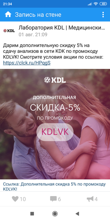 Анна Иванова 6 лет Девочки, делюсь информацией! Анализы Друзья, в КДЛ дополнительная скидка к карте здоровья по промокоду KDLVK Посмотрите еще 20 записей на эту тему Отменить Ответить Чаты Беременных Выберите чат: Январята-2026 Февралята-2026 Мартята-2026 Апрелята-2026 Майчата-2026 Июнята-2026 Июлята-2026 Августята-2026