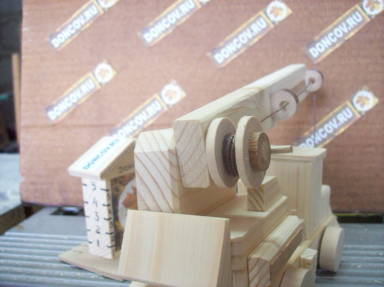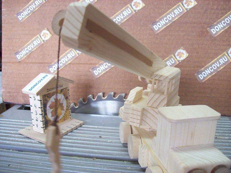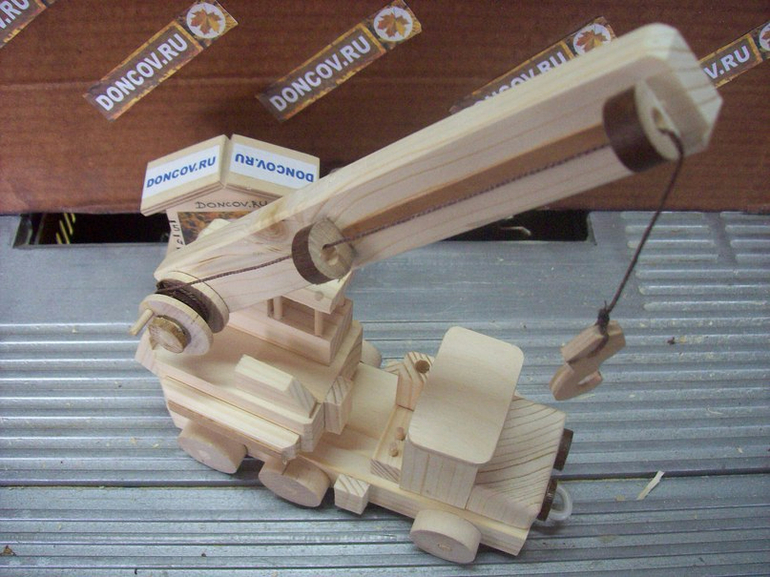 Строительный кран полностью деревянный. Без покрытия лаками, морилками и грунтовками. Кран имеет стрелу которая поворачивается на 360 градусов, так же катушку для намотки троса с крючком. Понравилось?