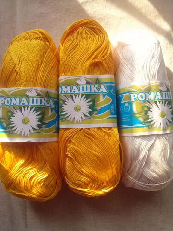 110руб за мотоk РОМАШКА Цена 440руб 100% мерсеризованный хлопок 75г-320м в упаковке 4шт(300гр)