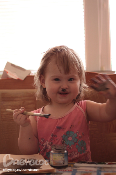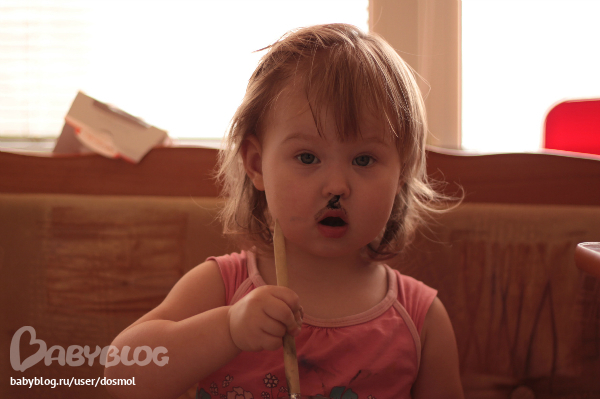 вот фото наших больных дней, Лиза вытирала сопли и рисовала и получился маленький Чаплин :)